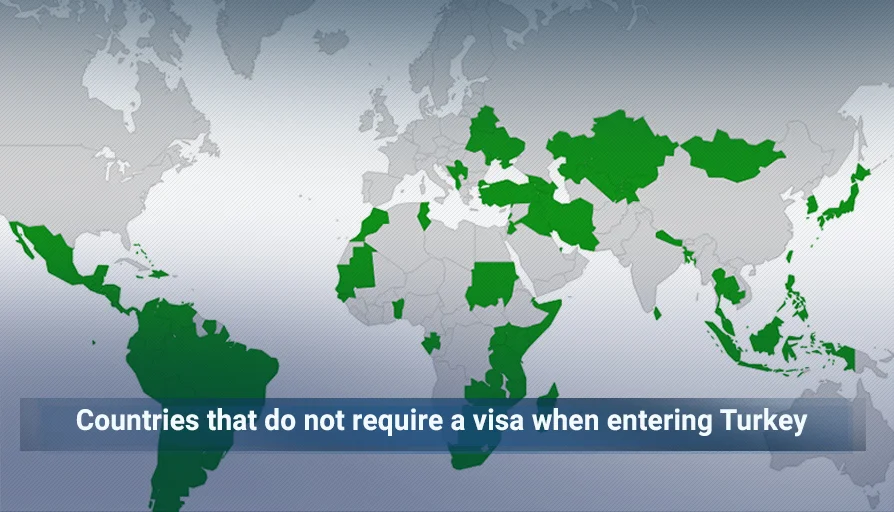What are the foreign countries that do not require a visa when entering Turkey?